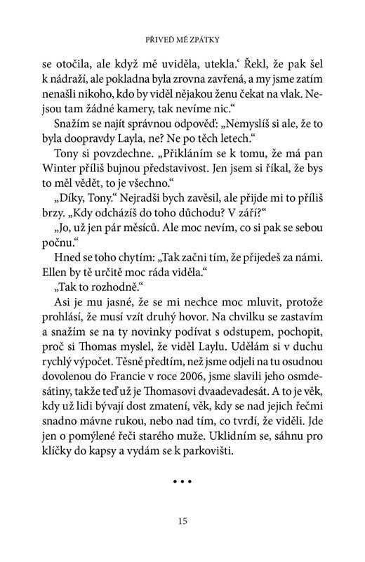 Byli mladí a zamilovaní. Na dovolené ve Francii zastavili u benzinové pumpy a Finn si odskočil. Když se vrátil, byla Layla pryč a už ji nikdy neviděl. Aspoň tak vypovídal na policii. O mnoho let později se Finn zasnoubil s Laylinou sestrou Ellen. Jenže najednou zavolala policie, že někdo Laylu...