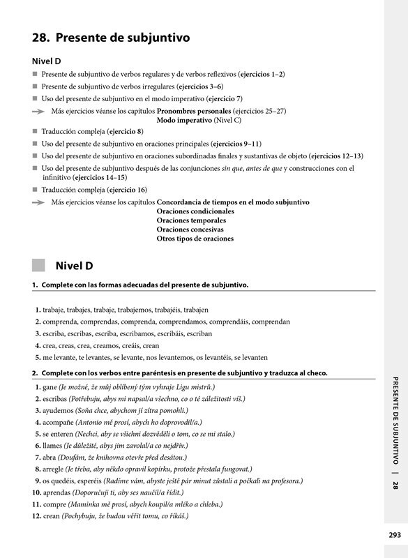 Publikace je určena studentům španělštiny, kteří si chtějí procvičit teoretické znalosti jazyka. Cvičebnice je rozdělena podle slovních druhů, nejvíce prostoru je věnováno slovesu. Kapitoly se dále člení podle úrovně obtížnosti.Poslední kapitola se soustředí na procvičení specifických jevů,...