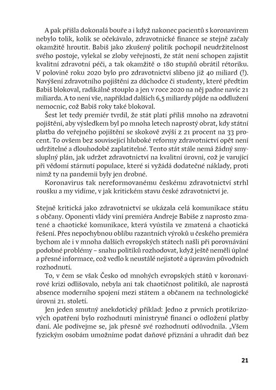 Uznávaný novinář David Klimeš pojmenovává v aktuální a potřebné knize některé z nejzávažnějších problémů dnešního Česka. Čtivě napsanou knihu doplňují doslovy osmi předních českých ekonomů, sociologů a dalších osobností.