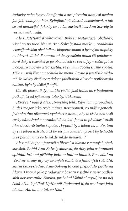 Kriminalista Josef Bergman chce strávit poklidnou dovolenou v odlehlé vesnici u norského fjordu. Místo rybaření se však ocitne v hodně zamotaném případu. Místní psychosomatička Katrine totiž začne dostávat výhružné vzkazy, vyčítající jí smrt její sousedky. Vzápětí Katrine zemře další pacientka....