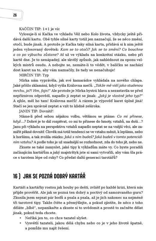 Máte zase čas na tarot? V druhém dílu stejnojmenné knihy najdete dalších sto jedenáct praktických, hravých a jednoduchých tarotových tipů. Díky nim zjistíte, jak si karty vyložit, na co se zaměřit, jak tarot lépe poznat a jak porozumět tomu, co vám nebo vašim tazatelům chce říct. Vše vlastní...