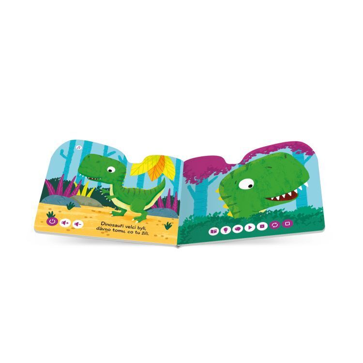 Dinosauři žili na naší planetě před mnoha a mnoha miliony let. Jací vlastně byli? Velcí, hluční a věčně hladoví! V knížce se potkáš s tyranosaurem rexem a brontosaurem. Stačí ji jen otevřít a na chvilku se ocitneš s obrovskými tvory v pravěku.
