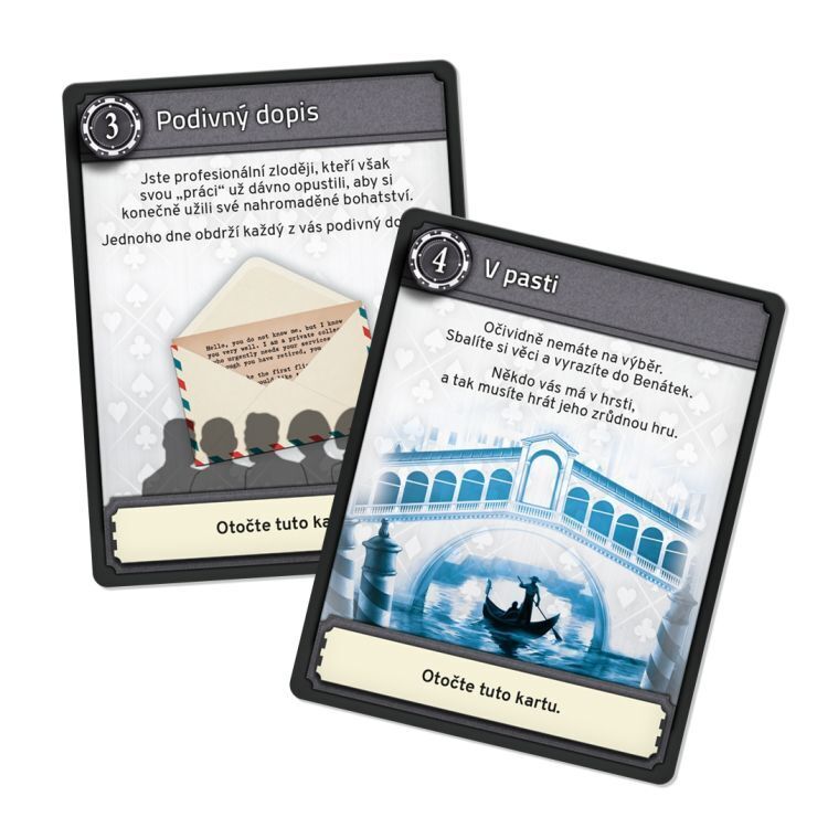 Dokážete se vloupat do slavného kasina v Benátkách a ukrást žeton obrovské hodnoty? Únikovka je karetní variací na populární únikové hry, při nichž se skupina přátel (nebo kolegů) nechá zamknout do místnosti plné rébusů a snaží se z ní v časovém limitu uniknout pryč. Upozornění: Hry Únikovky...