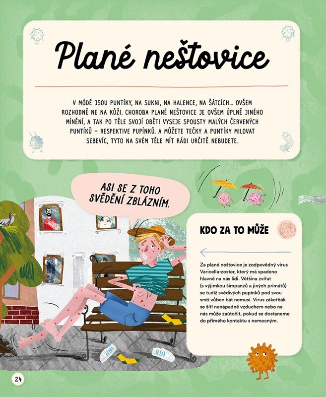 Chceš se stát doktorkou nebo doktorem? Pak ti určitě přijde vhod kniha plná těch nejotravnějších nemocí... a chytrých, ale také zábavných rad, jak na ně. Ať už chceš pomáhat lidem kolem sebe, nebo tě jenom zajímá, kdo je to ten záhadný otolaryngolog, přečti si tuhle knížku. Dozvíš se v ní...
