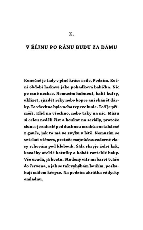 Jsem hezká, ale ne Barbie, jsem chytrá, ale ne intelektuálka, jsem vtipná, ale ne za každou cenu. Takovou ženu by chtěl každý muž. Než však k této dokonalosti žena dozraje, stihnou se jí zpravidla kromě obzorů rozšířit i boky a kromě životních zkušeností prohloubit vrásky. Tak co je vlastně...