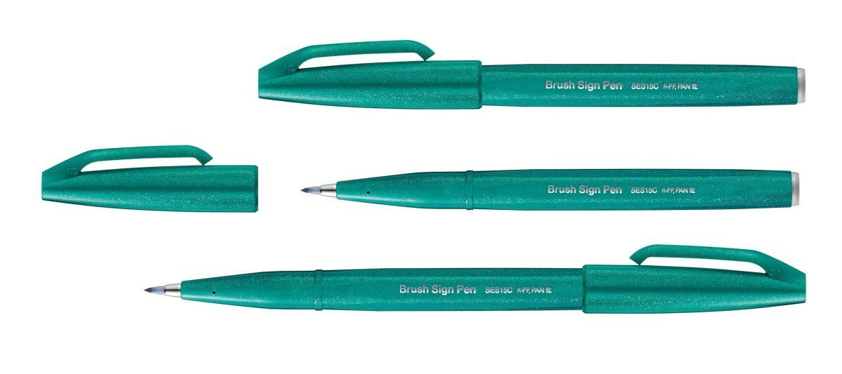 Brush pen popisovač Pentel SES15 Sign Pen se štětečkovým hrotem v kovové objímce, jsou vhodné i pro začátečníky, kteří teprve kr...