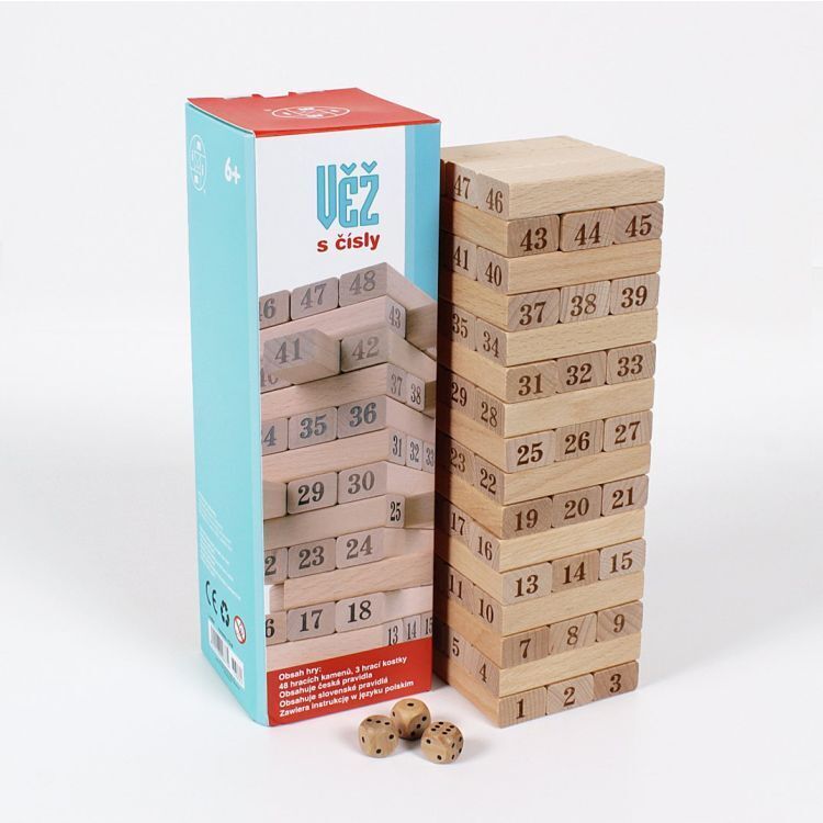 Věž s čísly můžete hrát jako klasickou Věž, nebo použít kostky pro širší využití celé hry - například házet jen jednou kostkou a podle toho, jaké číslo padne, tolik musí hráč vytáhnout kamenů a umístit je nahoru na věž. Hra obsahuje: 48 hracích kamenů, 3 hrací kostky a...