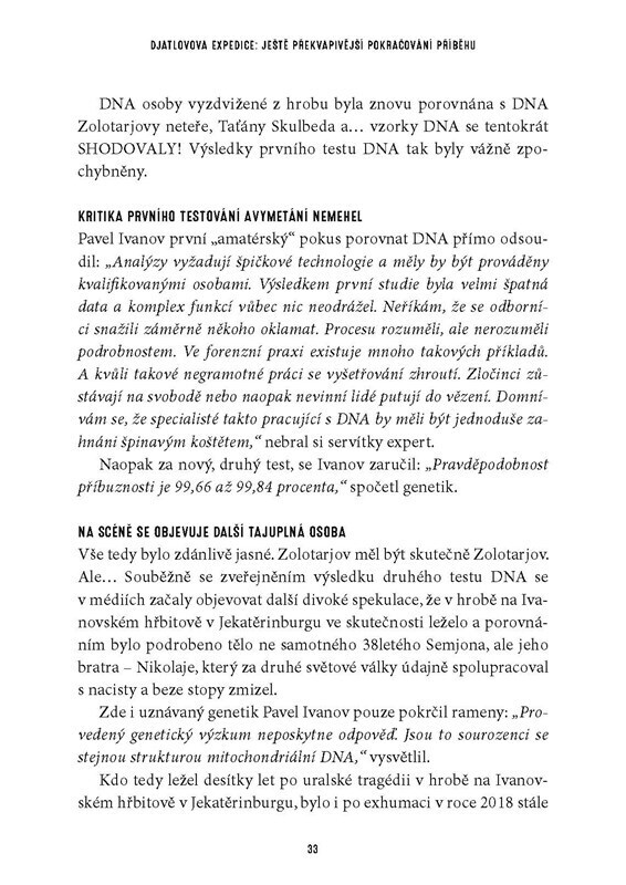 V případu Djatlovovy expedice došlo za poslední roky k řadě nečekaných zvratů a odhalení. Jak dopadla exhumace těla nejtajuplnějšího člena výpravy, Semjona Zolotarjova? Proč ruská generální prokuratura obnovila vyšetřování? Jak je možné, že jeden ze svědků djatlovce viděl po jejich smrti na...