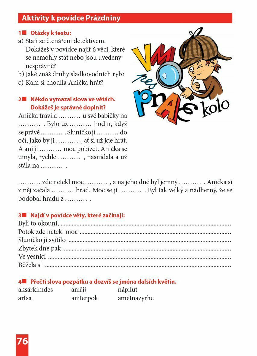S naší knížkou se stanou bystrými detektivy, kteří luští záhady skryté v textech a hrají si s písmenky a slovíčky v celé řadě nápaditých cvičení. Čtenář detektiv si hravě poradí s každým textem!