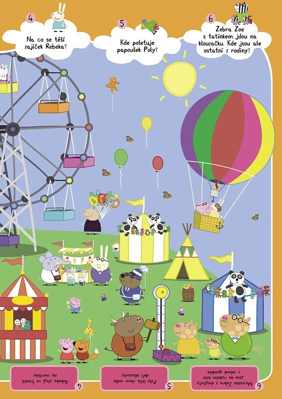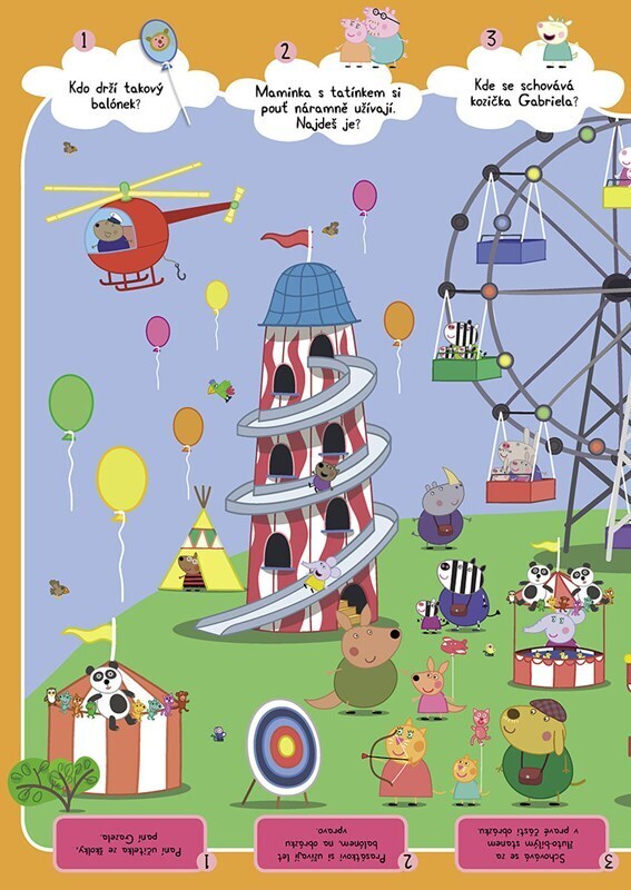 Přidejte se k prasátku Peppě a objevujte společně její pestrý svět! V knížce najdete scénky z oslavy narozenin, ze hřiště, z pouti a z pohádkového zámku. Na každé stránce je spousta a spousta obrázků k prohlížení a hledání a s nimi spojené veselé hádanky a úkoly. S pomocí této knihy si vaše dítě...