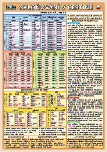 Tabulky všech základních vzorů podstatných jmen, přídavných jmen a zájmen. Titul mimo jiné obsahuje skloňování číslovek a skloňo...