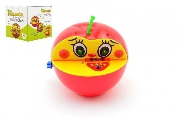 Pokladnička červené jablko s červíkem na klíček plast 11x10cm v krabičce 11x11x10cm...