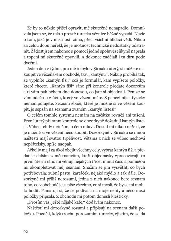 Markéta Všelichová strávila v tureckém vězení tři a půl roku. Ve svých vzpomínkách živě popisuje vše, co jejímu zatčení předcházelo: humanitární činnost, výpravy na Blízký Východ i pomoc Kurdům. Stejně autenticky líčí drsnou realitu tureckých žalářů, vztahy se spoluvězenkyněmi a mrazivé příhody...
