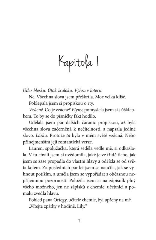 Lily při jedné obzvláště nudné hodině chemie nedává pozor a čmárá si na lavici slova oblíbené písničky. Druhý den zjistí, že někdo rozepsanou sloku dokončil, a ještě přidal vzkaz pro ni. Zajímavé! Brzy už si se svým anonymním přítelem vyměňují dlouhé dopisy, doporučují si vzájemně kapely a sdílí...