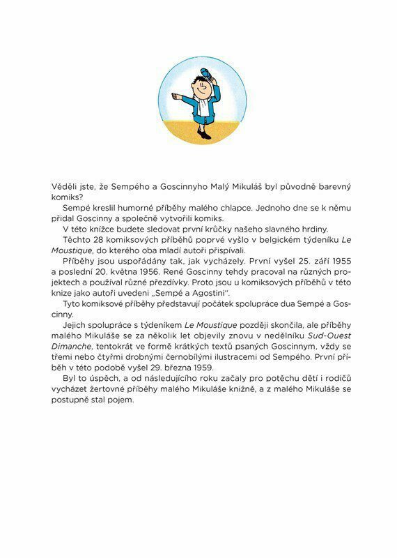 Věděli jste, že příběhy malého Mikuláše vznikly původně jako komiks? Knižně dosud nevydané příběhy spatřily světlo světa v roce 1955 a s nimi i postavička malého Mikuláše. Vycházely na pokračování v belgickém týdeníku Le Moustique. Později se je autoři Sempé a Goscinny rozhodli oživit v novinách...
