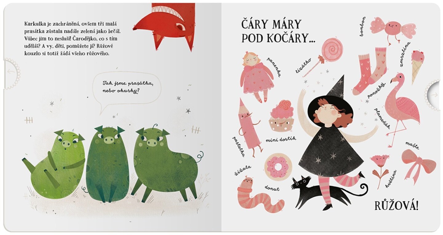 Každá začínající čarodějka občas nějaké to kouzlo pěkně poplete. Uznejte samy, děti, už jste někdy viděly modrou Karkulku, zelená prasátka nebo šedivou Zlatovlásku? Čarujte společně s malou čarodějkou a navraťte pohádkovým bytostem jejich správné barvy!