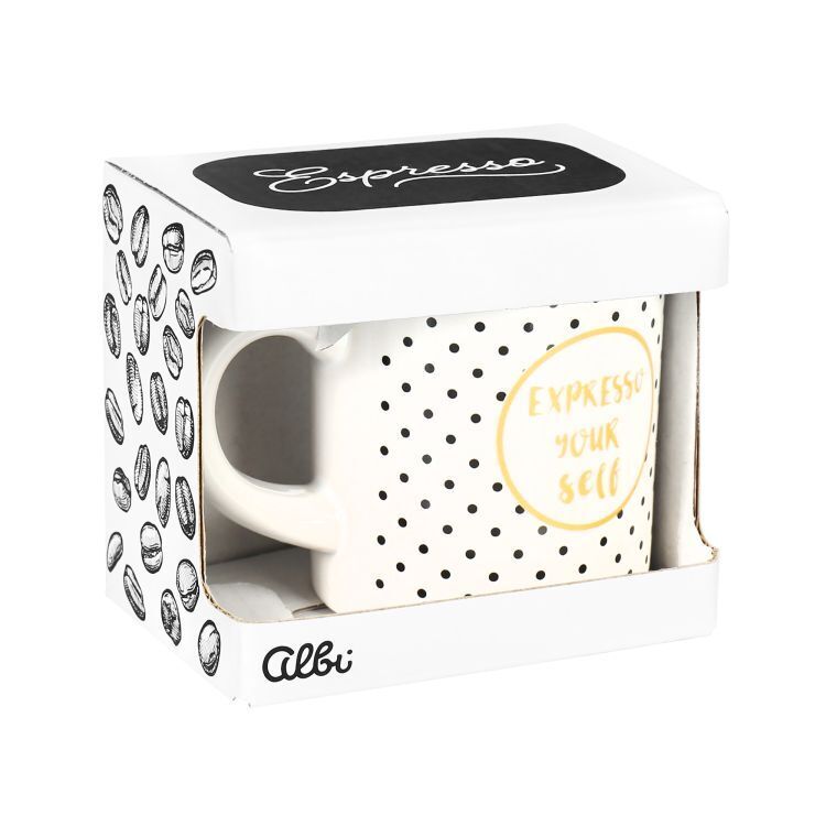 Potěšte milovníky kávy hrnečkem na espresso v krabičce. Objem: 100 ml