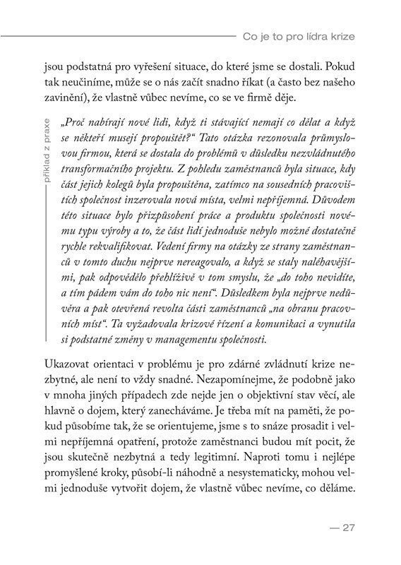 Může se nám zdát, že jedna krize střídá druhou, ale bez ohledu na to, co se děje okolo nás, musíme vycházet se zaměstnanci a pracovat. Jak zvládnout lidi v krizovém období? Jak je motivovat? Co dělat, když panikaří? Jak je usměrnit? V této knize najdete zkušenosti manažerů a vedoucích...