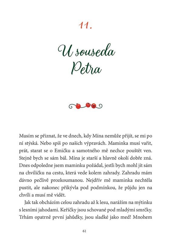 Sedmiletý Cyrilek bývá často nemocný, a tak na radu lékaře odjíždí na celé léto na venkov. Brzy se tu seznámí s holčičkou Mínou. Ta má bujnou fantazii, chodí bosa a v okolí se vyzná. Cyrilek se postupně učí odvaze a nachází v nové kamarádce někoho, komu důvěřuje a koho má rád. Mína ho seznámí...