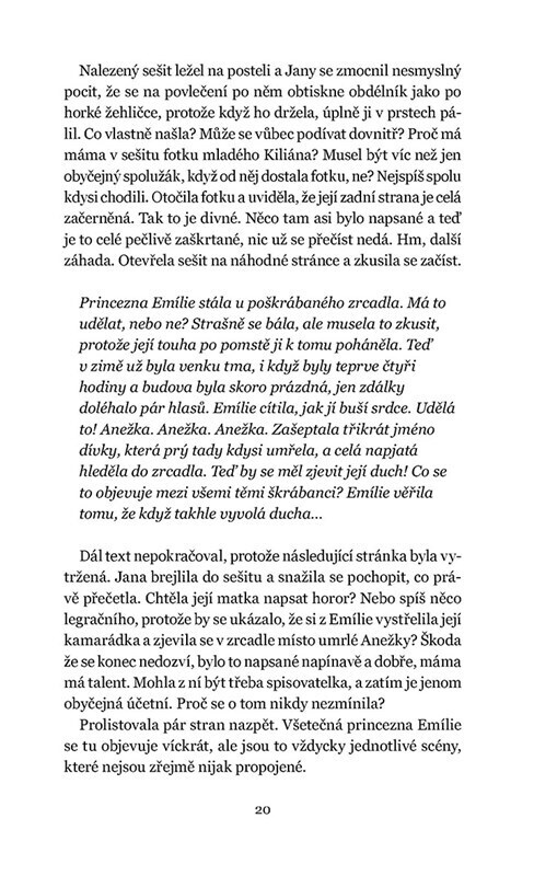 Píše se rok 1982 a v patnáctileté Janě se kromě dospělosti probouzí i poznání, že s minulostí její rodiny není cosi v pořádku. Otec před rokem zemřel a v matčině ložnici se ukrývá sešit plný nepochopitelných zápisků. Prarodiče se chovají přinejlepším výstředně a mluvit před nimi o některých...