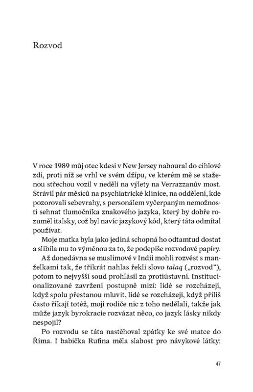 Dcera hluchých rodičů vyrůstá v živelné italské čtvrti v NY. Matka ji ale z domáckého prostředí vytrhne a odvede na italský venkov. Ani v dospělosti hrdinka nepřestane črtat nové migrační trasy a před pocity vykořeněnosti, nerovnosti a vzdálenosti hledá útěchu ve slovech a umění. Z útržků...