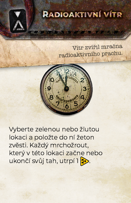 arciartefakt je skutečný a že brzy způsobí kataklyzma horší, než to v roce 1986. Okamžitě se vydáváte na cestu za slávou... A smrtí. Zóna je dobrodružná desková hra, která se odehrává v černobylské zakázané zóně. Ujímáte se rolí mrchožroutů, kteří čelí pokroucené