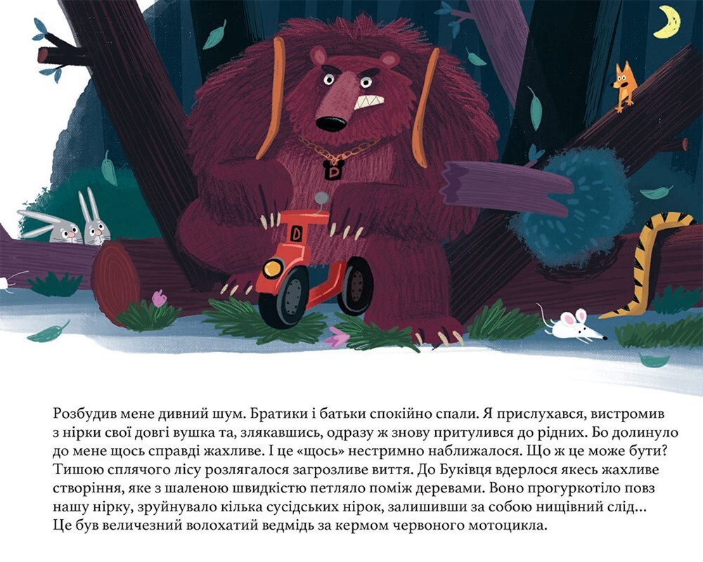 Dvojjazyčná česko-ukrajinská kniha o králíčku Chlupáčkovi, který žije v útulném doupátku v lese Bučisku spolu s celou svou králičí rodinou. Jeho vyprávění začíná v předjaří, kdy se v lese chystá každoroční velký sněm. Zvířátka se totiž na Bučisku pravidelně schází, o všem se spolu radí a...