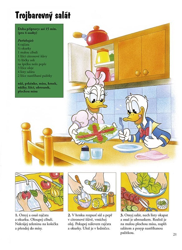 Nezní „Planoucí láska housera Gusty“ zajímavě? A co „Donaldovi skořicoví šneci“? Zalistuj v knížce a objevíš celou řadu lákavých receptů na báječné pochoutky. Naučíš se vařit a péct podle Daisy, Bubíka, Dulíka a Kulíka a ostatních z Kačerova – a neměj strach, nic nemůžeš zkazit, názorné obrázky...