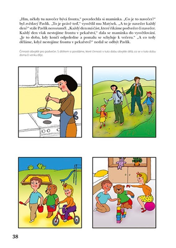 Pracovní sešit je určen dětem ve věku 4 až 6 roků k rozvoji časové orientace a prevenci potíží ve čtení, psaní, matematice a obtíží v získávání studijních dovedností plynoucích z nedostatečně rozvinuté časové orientace, vnímání posloupnosti a následnosti dějů, organizace činností. Každá strana...