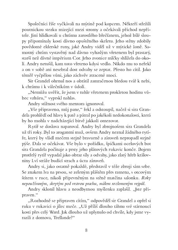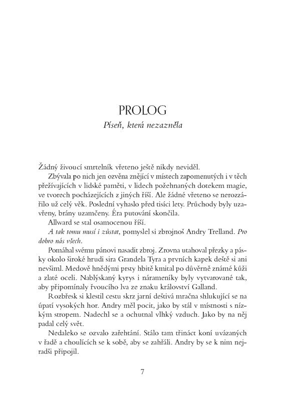 Allwardem se šíří podivná temnota. Cítí to dokonce i Corayne an-Amaratová, která žije až v zapadlém městečku na pobřeží. A brzy objeví pravdu: je posledním žijícím potomkem prastarého rodu a jedinou nadějí na záchranu světa. Ale nebude na to sama. I když tma houstne, hodlá se ke Corayne připojit...