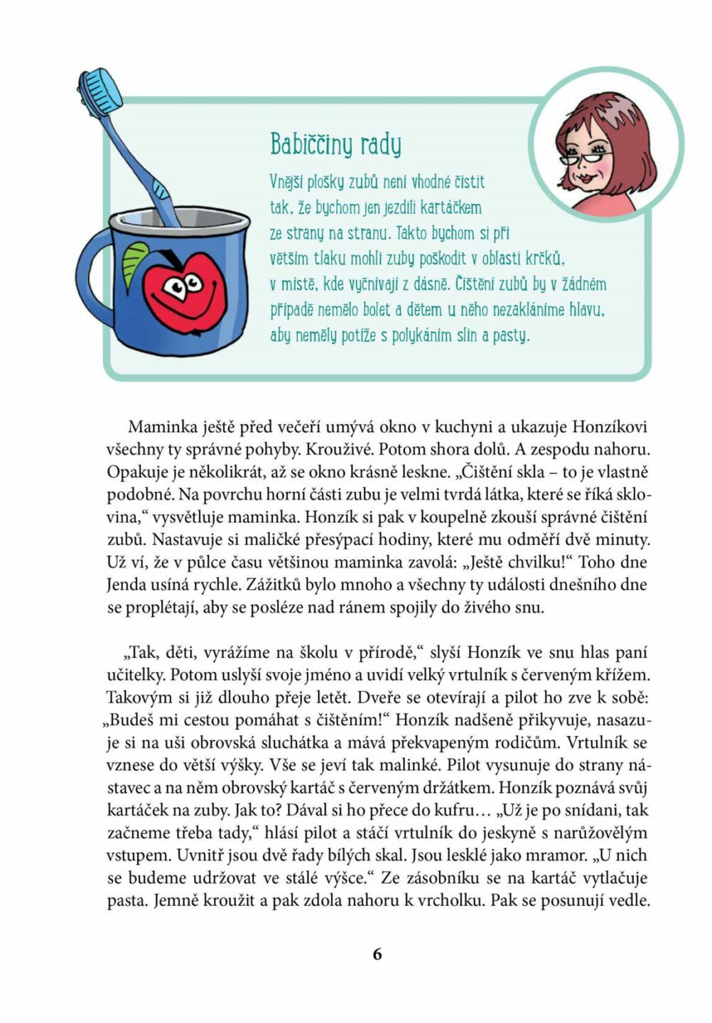 Honzík rád navštěvuje babičku a dědečka, kteří mají čas a ochotu upozorňovat ho na různé zajímavosti v okolí a vysvětlovat mu nesrozumitelné věci. Cílem knihy je seznámit nejmladší čtenáře s tím, jak se správně starat o chrup a čeho se při péči o zuby vyvarovat. Kniha je vhodným společníkem pro...