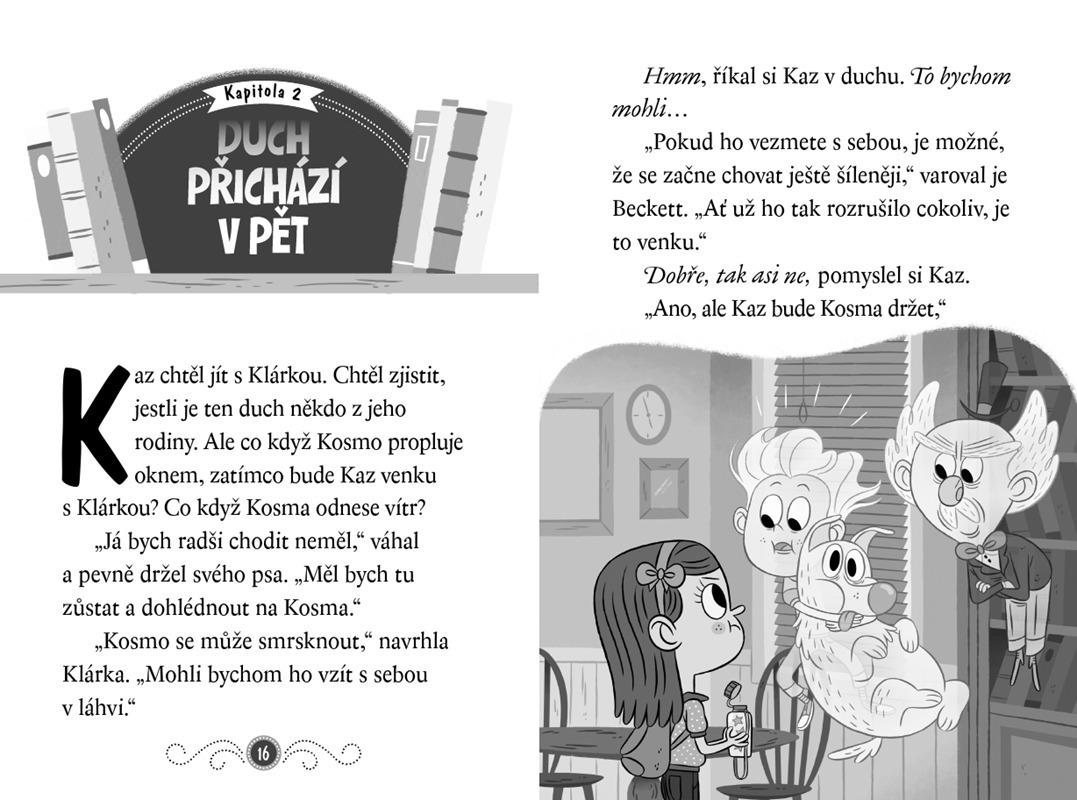 Kaz není obyčejný kluk, je to duch. Klárka zas není obyčejná holka – dokáže totiž vidět duchy. Jejich detektivní kancelář je proto jako stvořená pro řešení zapeklitých záhad! Čtvrtý případ je zavede do strašidelného domu, kde se přesně v pět hodin odehrávají divné věci: rozsvěcuje se lampa,...