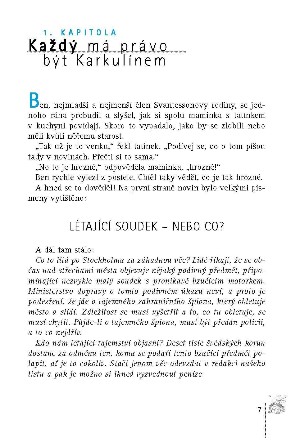 V obyčejné ulici ve Stockholmu bydlí obyčejná rodina Svantessonových – tatínek, maminka a tři děti Albert, Bety a Ben. Na střeše v domečku za komínem bydlí však ještě někdo, jmenuje se Karkulín. Je to polopohádkový človíček, který umí létat a provádět neuvěřitelné věci. Sám o sobě tvrdí, že je...