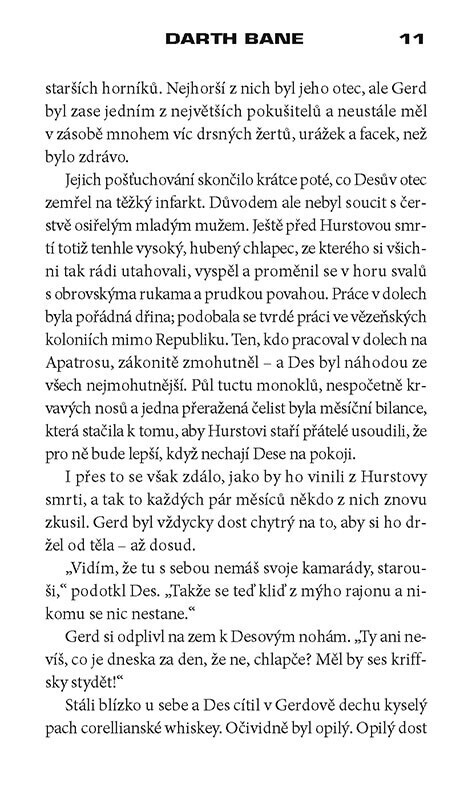První svazek trilogie o legendární postavě řádu Sithů. Bývalý horník Dessel prchá před republikovými vojáky a vstoupí do řad sithské armády. V ní zažije tvrdý křest ohněm v krutých bojích proti Jediům. Později přijme nové jméno Bane a začne studovat na Akademii založené sithskými mistry. Na...