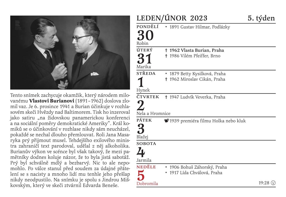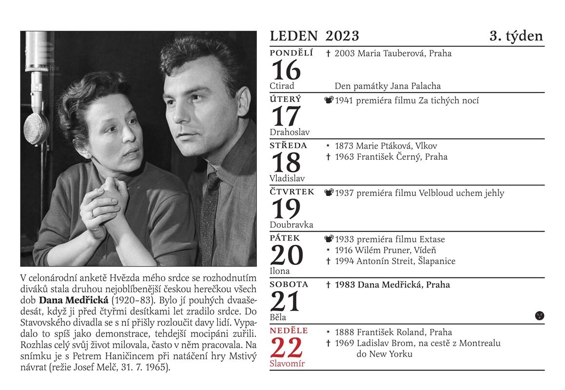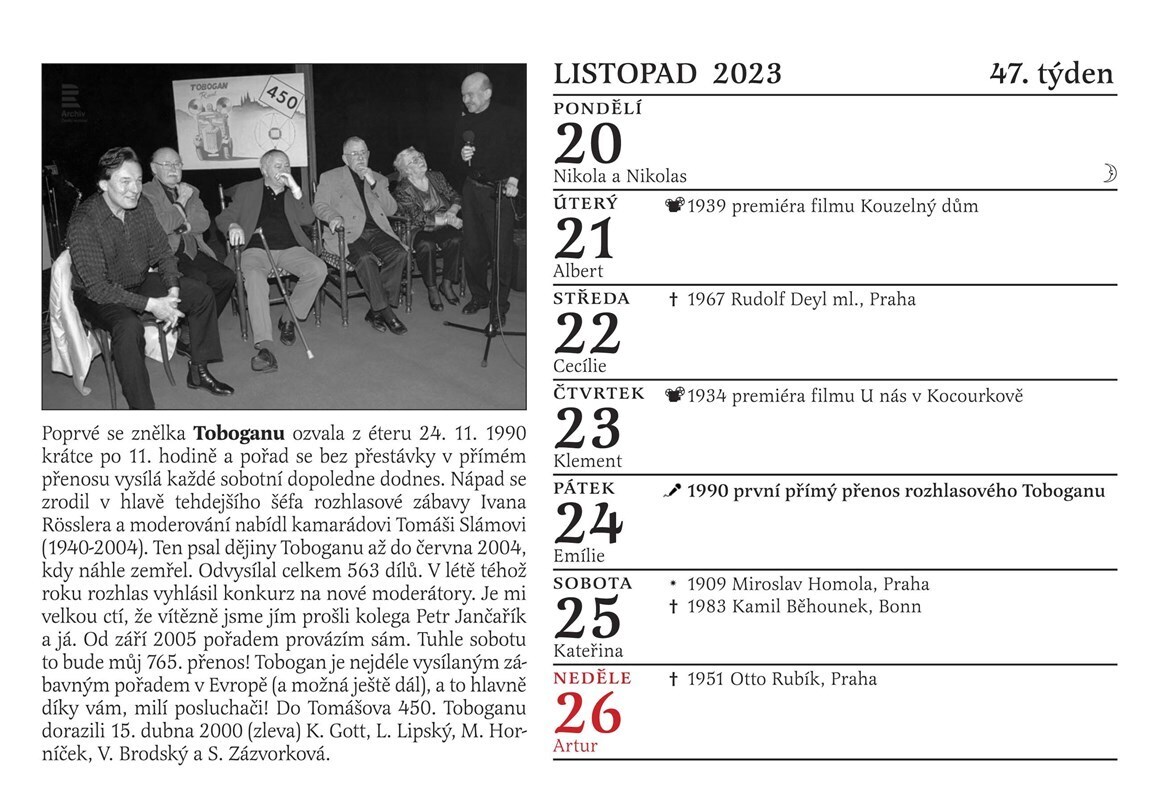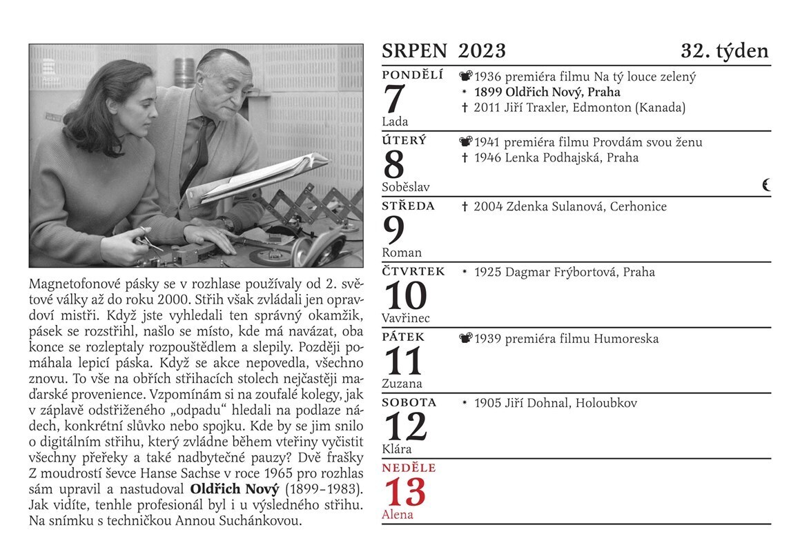 Tradiční Cibulkův pamětnický kalendář tentokrát potěší nejen všechny milovníky starých českých filmů, ale i rádia. Proč? Přesně před 100 lety se totiž u nás začala psát historie tohoto nesmrtelného média. Československo se tehdy stalo druhou evropskou zemí, která měla řádné rozhlasové vysílání....