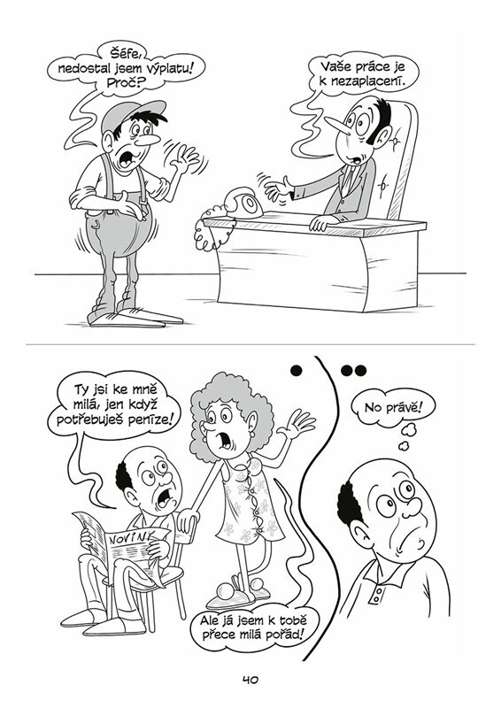 Ilustrovaná kniha plná vtipů udělá radost všem. Věděli jste, že během smíchu se mozku dostává až 5 x více kyslíku než při obvyklém dýchání a dochází při něm k dokonalé synchronizaci mozkových hemisfér? Doporučujeme tedy číst tuto knihu i o přestávkách ve škole. O hodinách vám to pak bude víc...