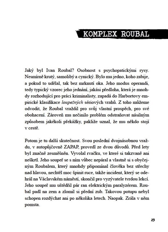 Není tělo – není vražda! Platnost této teorie zajistila Ivanu Roubalovi svého času svobodu pohybu i veškeré činnosti. Bohužel… Později byl pravomocně odsouzený za pět prokázaných vražd, mrtvých měl ale podle všeho na svědomí více. Kde jsou těla? Sežrána prasaty na jeho statku? Těžko… Otázky se...