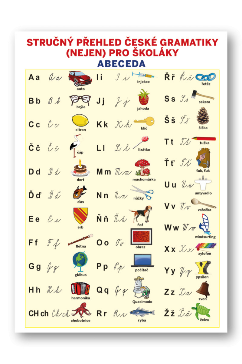 V této přehledné příručce najdete prakticky uspořádaný přehled české gramatiky. Obsahuje vše od abecedy, vyjmenovaných slov, informací o dělení hlásek, psaní i/y, velkých písmen i písmene ě, psaní ú/ů a i/í, ale i vše o podstatných jménech, přídavných jménech,