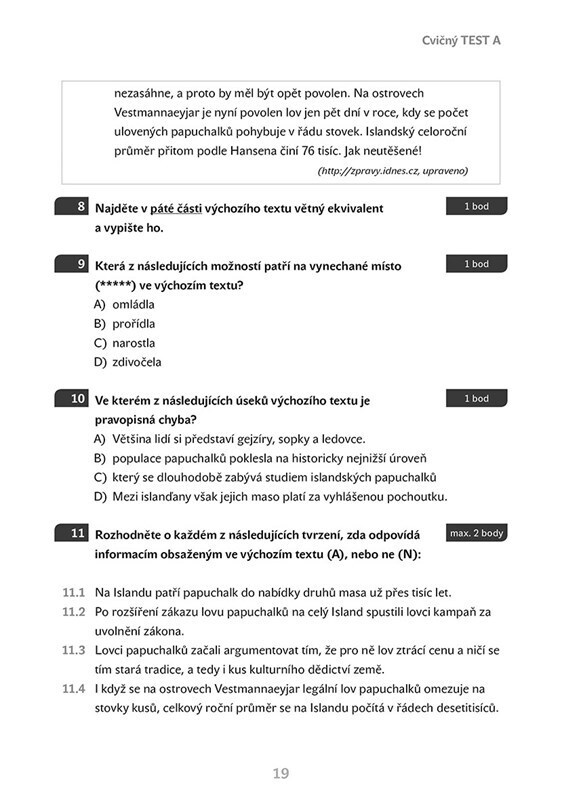 Příprava na státní přijímací zkoušky na čtyřleté obory vzdělávání - Český jazyk