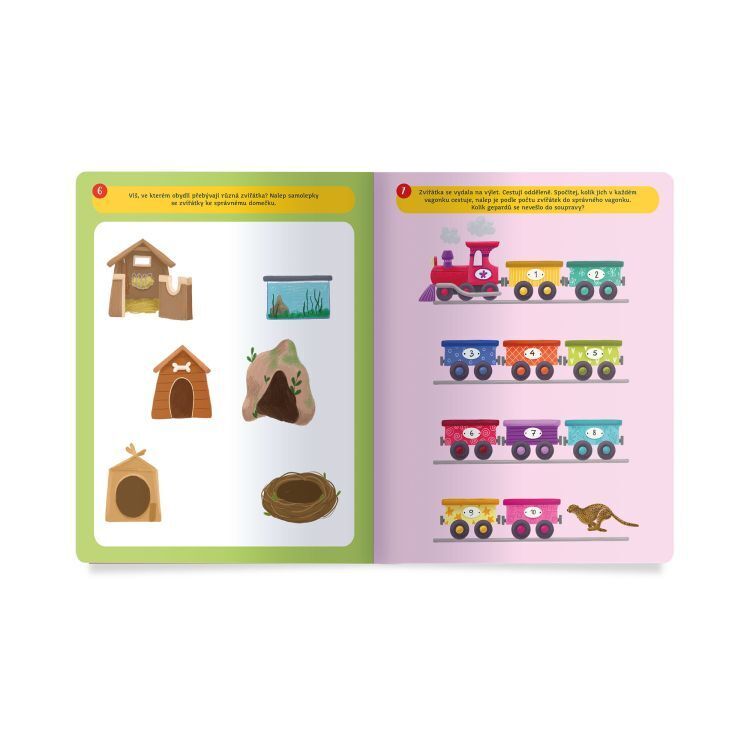 Samolepkové aktivity - Zvířátka obsahují 24 stran s úkoly a aktivitami na doplňování se 144 samolepkami a vystřihovánkami.