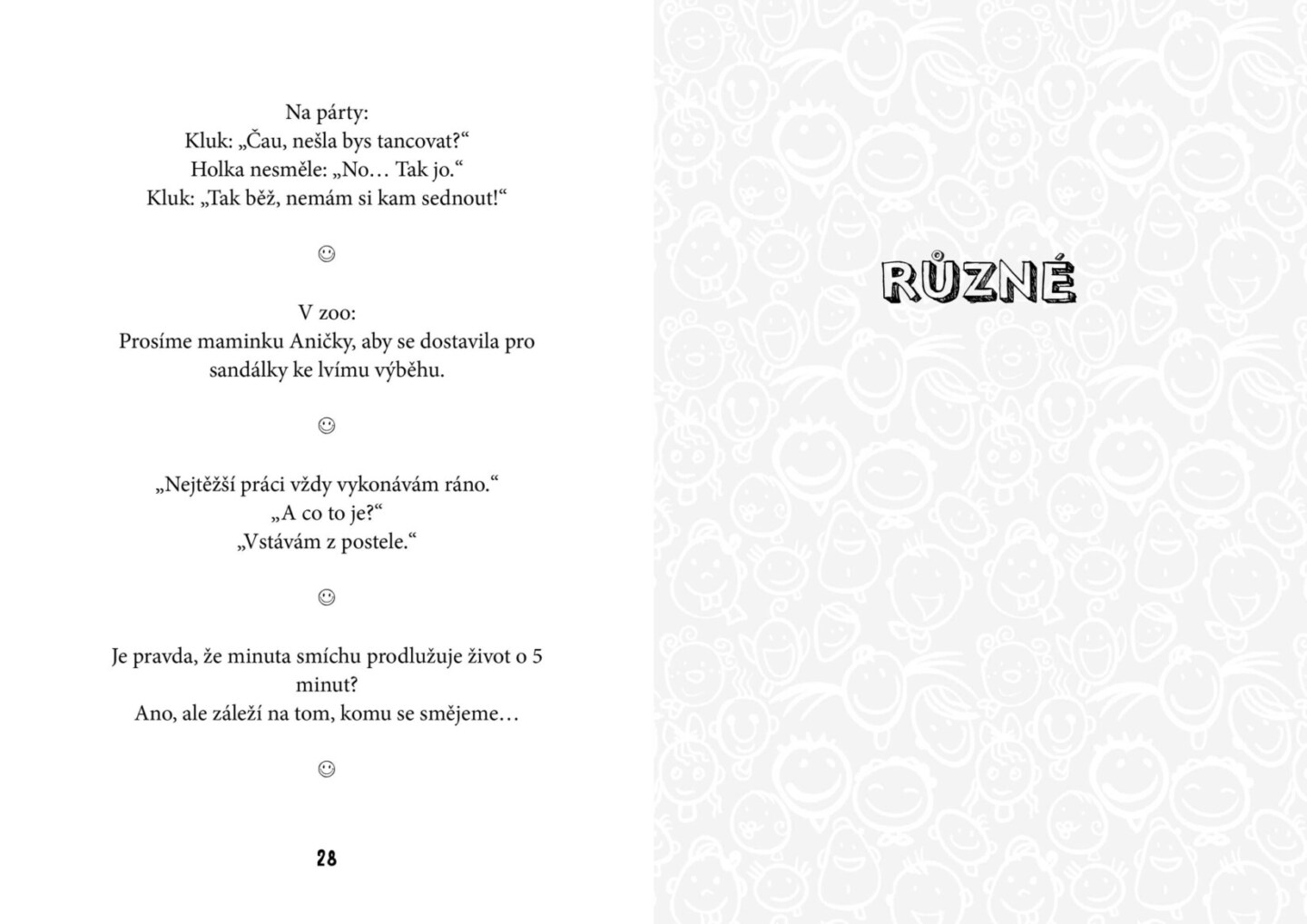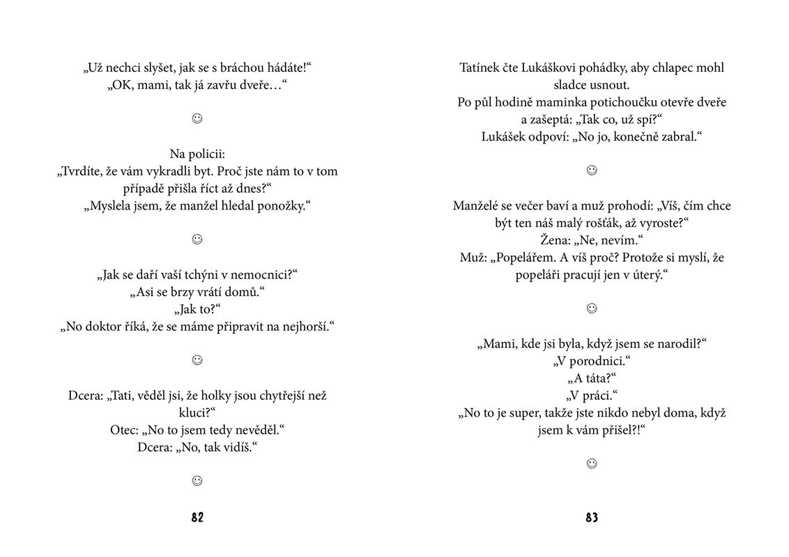 Ilustrovaná kniha plná vtipů udělá radost všem. Ať už se začtete do vtipů o Pepíčkovi, ze školy, o prarodičích, z pohádek nebo dalších, pořádně se zasmějete a budete mít dobrou náladu. Věděli jste, že během smíchu se mozku dostává až 5 x více kyslíku než při obvyklém dýchání a dochází při něm k...