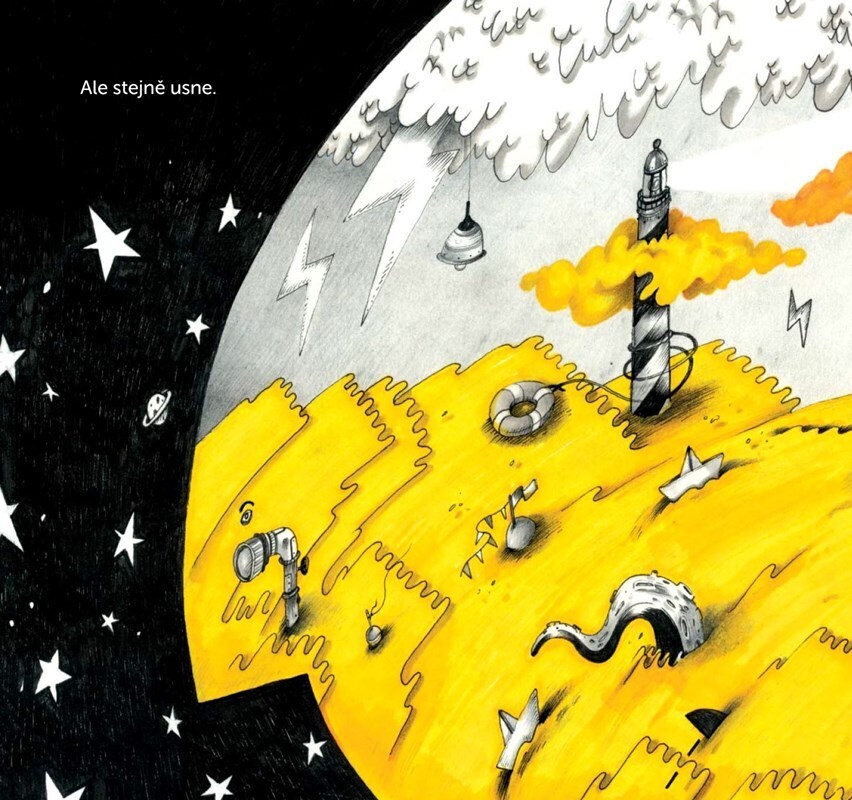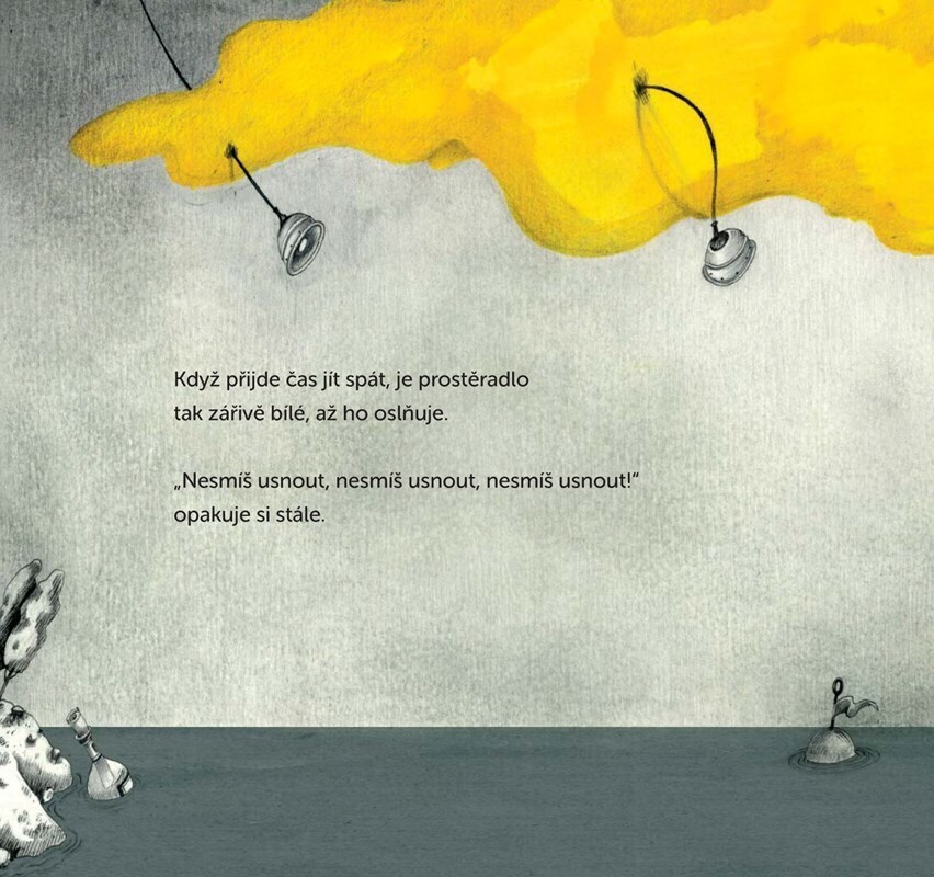 Je tady léto a s ním prázdniny. Ale našemu malému hrdinovi se vůbec nechce s ostatními na tábor. Má totiž tajemství. Je žluté, kulaté a každou noc se mu objevuje pod peřinou. Co si s ním na táboře počne? Výjimečná obrázková kniha a pomocník pro děti, které trápí noční...