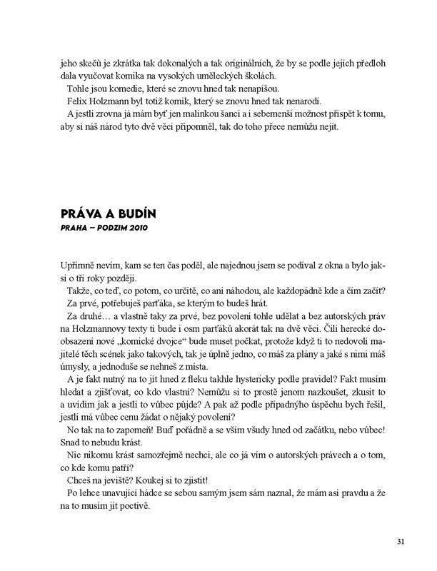 Felix Holzmann je fenomén. Jeho scénky jsou dnes již kultovní záležitost a nedílná součást české popkultury. Výjimečná publikace z pera Davida Šíra mapuje tvůrčí osudy jednoho z největších českých komiků, ale netradičně i vývoj jeho scenáristického odkazu. Neobyčejná koláž obsahuje nejen mnoho...