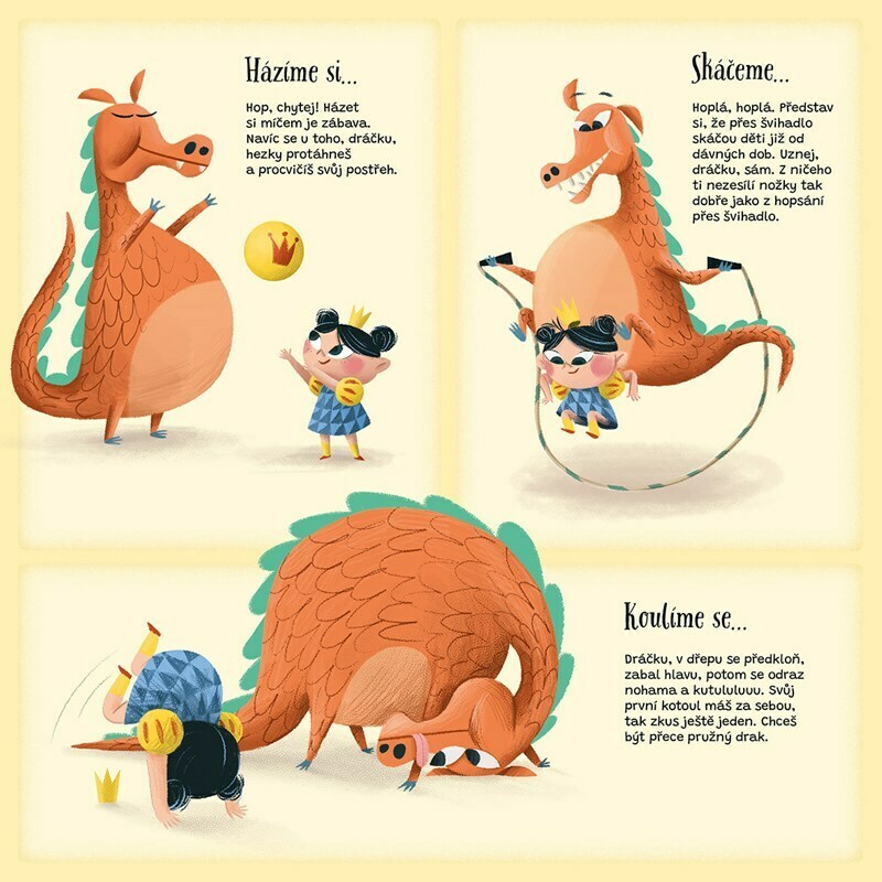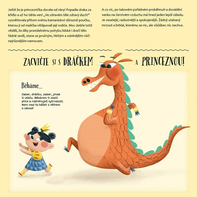 Dráčka ze sluje bolí zoubky. To ale ještě netuší, že si ho vezme do parády jedna tvrdohlavá princeznička. Už žádné naříkání! Tady máš kartáček a pastu, začínáme s výukou. Světe, div se, z ušmudlaného a uplakaného dráčka je za chvíli kamarád do nepohody. A brzo se dozví, co jíst, jak si správně...