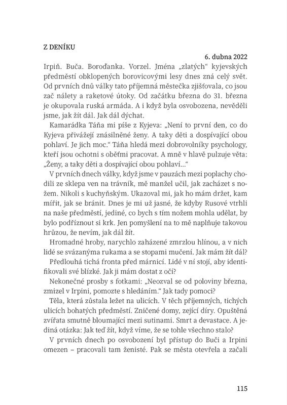 Jmenuji se Irina a jsem uprchlice. Do mého domu na předměstí Kyjeva přišla válka a vyhnala mě do Česka – stejně jako statisíce mých krajanů. Jediné, co chci, je vrátit se domů. A mezitím jsem tady sepsala své deníkové záznamy i rozhovory s přáteli a blízkými. Mnozí z nich uprchli před válkou z...