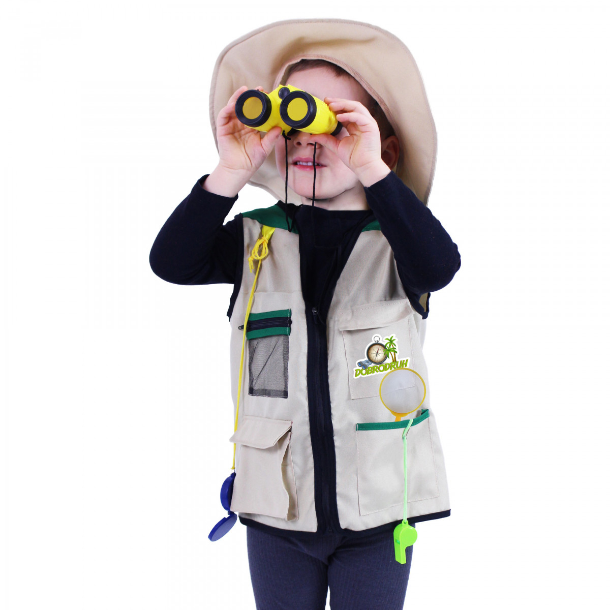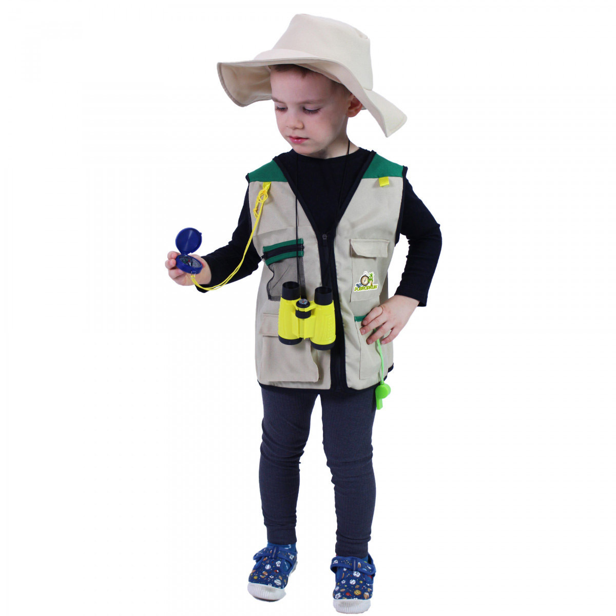Vydej se na dobrodružnou výpravu s tímto parádním vybavením! Karnevalový kostým ve stylu malého dobrodruha je určen pro chlapečky ve věkovém rozmezí 3-7 let (104-134 cm). Balení obsahuje vestu, klobouk (bez šňůrky), dalekohled, lupu, píšťalku a kompas.
