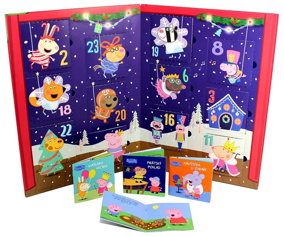 S prasátkem Peppou uteče čekání na Štědrý den jako voda! V originálním adventním kalendáři najdete celkem 24 malých knížeček s pěknou pohádkou – třeba o maškarním večírku, výletu na lodi nebo návštěvě cirkusu. A po Vánocích můžete knížky vrátit zpátky do okének, abyste si je mohli číst znovu a...