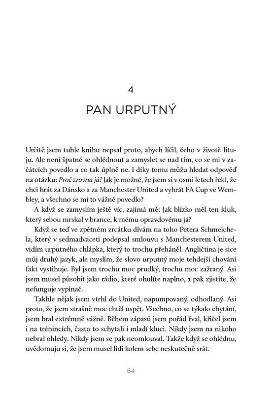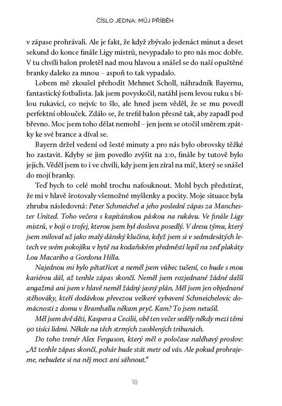 Příběh fotbalového velikána, který získal více titulů v Premier League než kterýkoli jiný hráč na jeho pozici. Schmeichel nás zavede do vítězného prostředí klubu, který v 90. letech změnil fotbal, a na hřiště jedné dechberoucí noci v Barceloně v roce1999. Kniha je však také příbehem jeho rodiny...