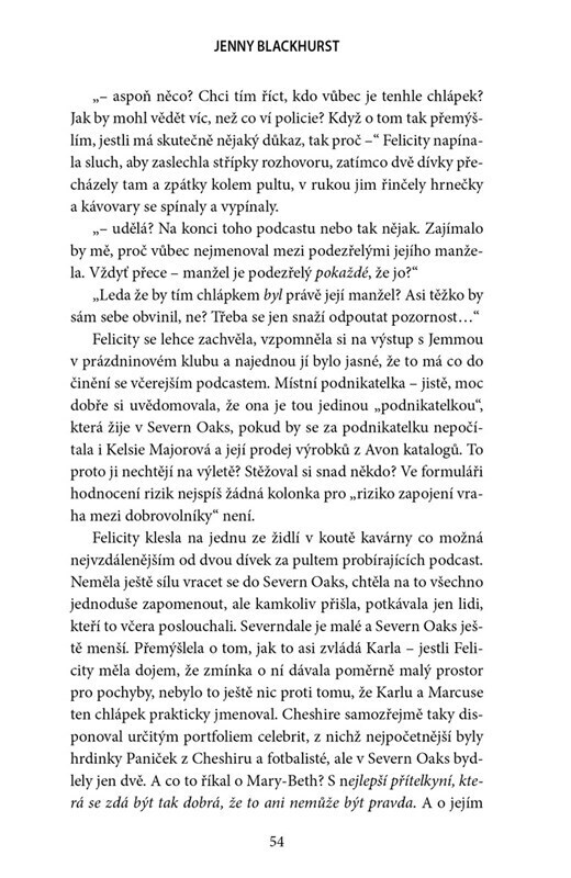 Je to rok, co Erica Spencerová zemřela po pádu ze schodů na halloweenském večírku. Ostatní obyvatelé exkluzivní čtvrti už pomalu zapomínají a jejich životy jdou dál. Až do chvíle, kdy se na Facebooku místní školy objeví oznámení, že se chystá podcast, jehož autor prozradí, co se té noci...