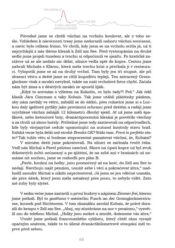 Ujet bezmála tisíc kilometrů na kole v plné polní, že se zdá nemožné? Bláznivé? Dobrodružné? Pro nás to byla zkrátka výzva s velkým V. Cestopis vypráví o cestě dvanácti přátel, kteří se rozhodli pokořit Alpy na kole. Začátek jejich cesty byl v italských Benátkách a konec symbolicky v Benátkách...